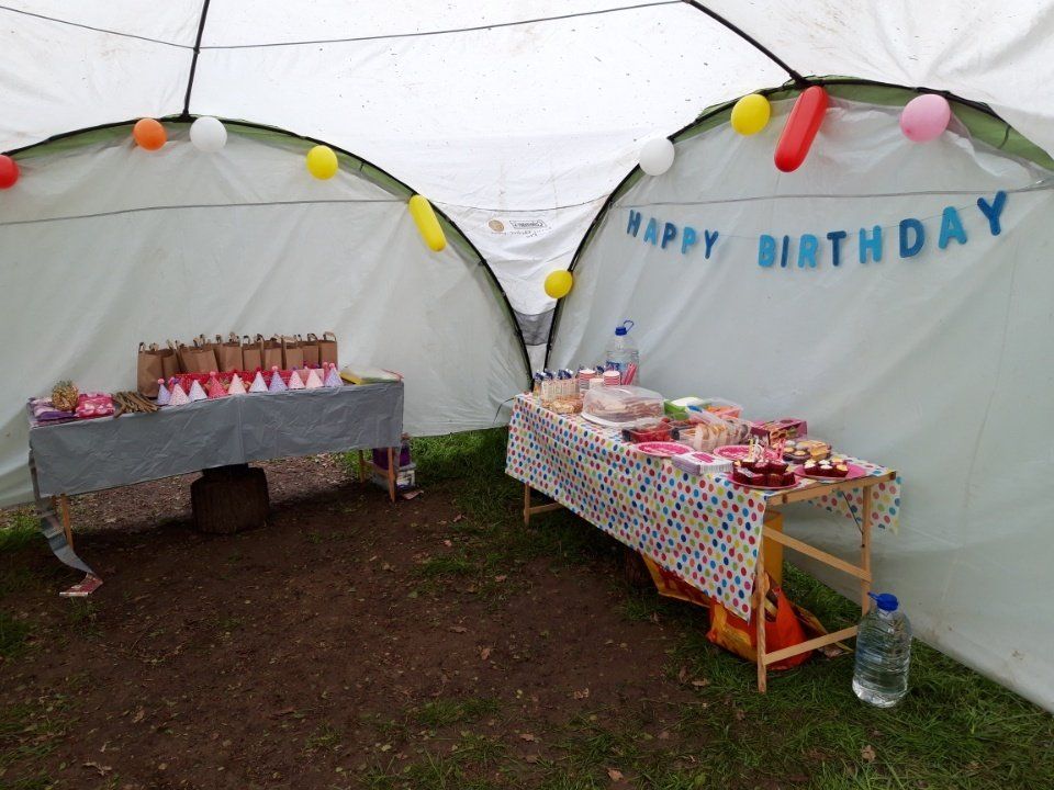The party itself was very well organised, a lovely tent was provided, beautifully decorated with balloons and banners. Tables were provided to accommodate our food and drink plus hand washing facilities and space for present etc. A nice touch was a little gift and card for our daughter from SPR. There were toilet facilities on site and covered areas in case of rain.
