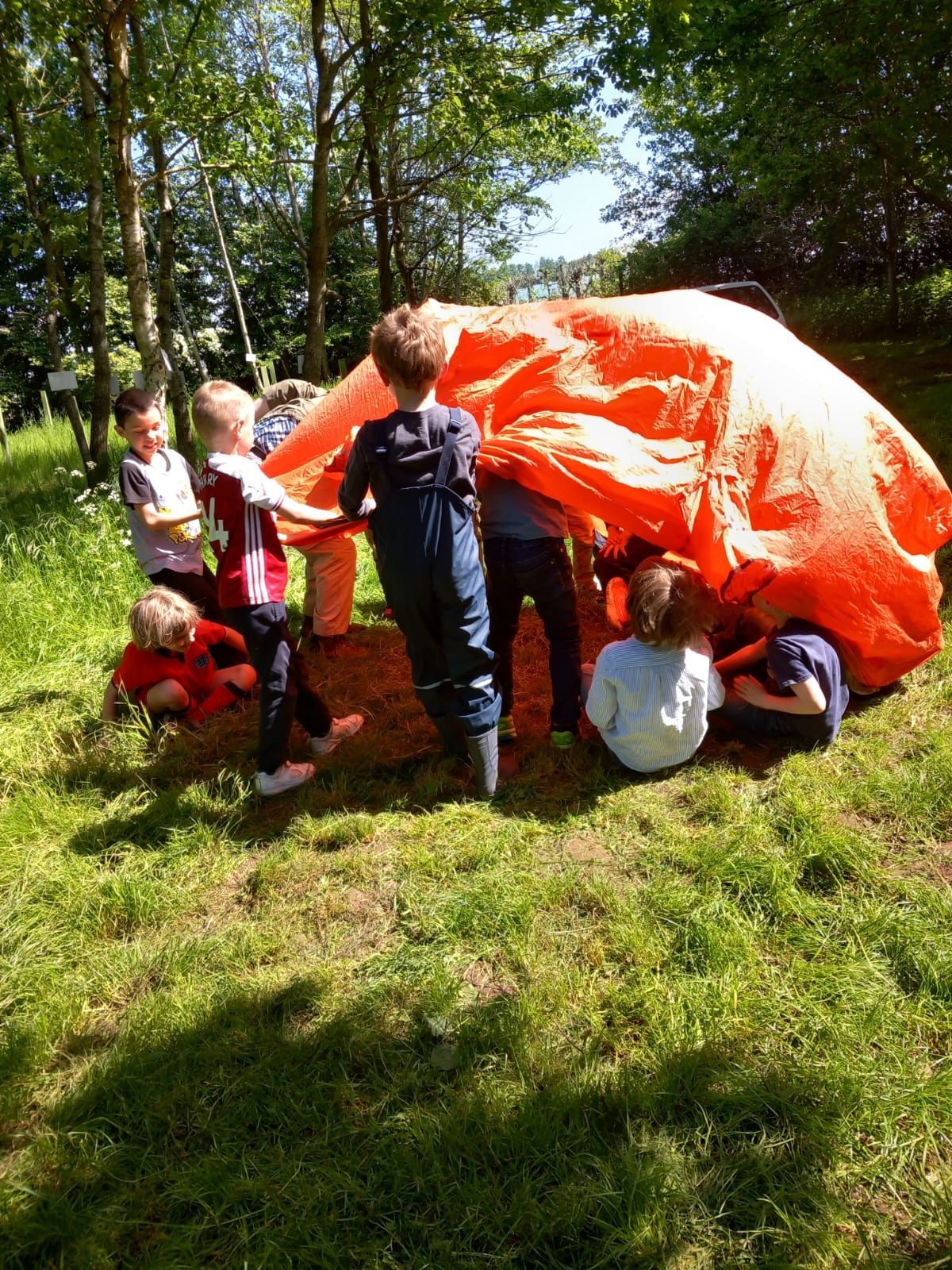 The day was five hours long but the events kept the children entertained and busy for the whole time – and worn out by the end. Parents were also welcome to stay and those who did enjoyed the event as much as the Children! The day started with an important safety brief and a tour of the site. The Children then enjoyed a number of games and activities including Treasure hunt, Seek and rescue a teddy, Den building, Tent construction, Emergency shelter use and a fun game of Musical Emergency shelter (a take on Musical chairs). During the meal break, the children were able to toast marshmallows on the fire – carefully supervised by Steve.